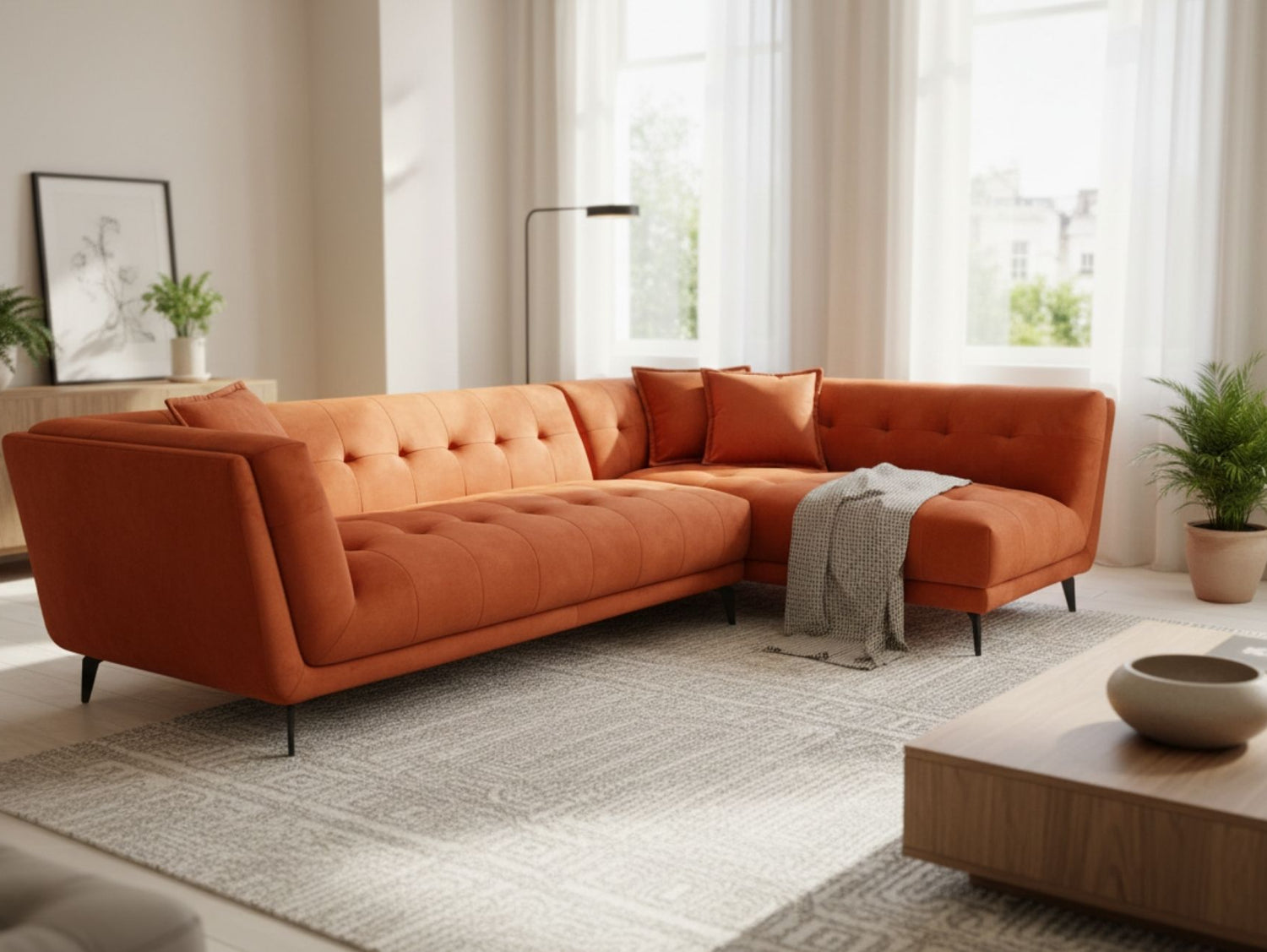 Make a bold statement in your home with the Icon Chaise in striking Dexter Orange. Combining classic charm with modern functionality, this chaise brings a refreshing pop of colour and timeless elegance to any space. Inspired by traditional Chesterfield design, it features beautifully tufted detailing that adds depth, texture, and sophistication.