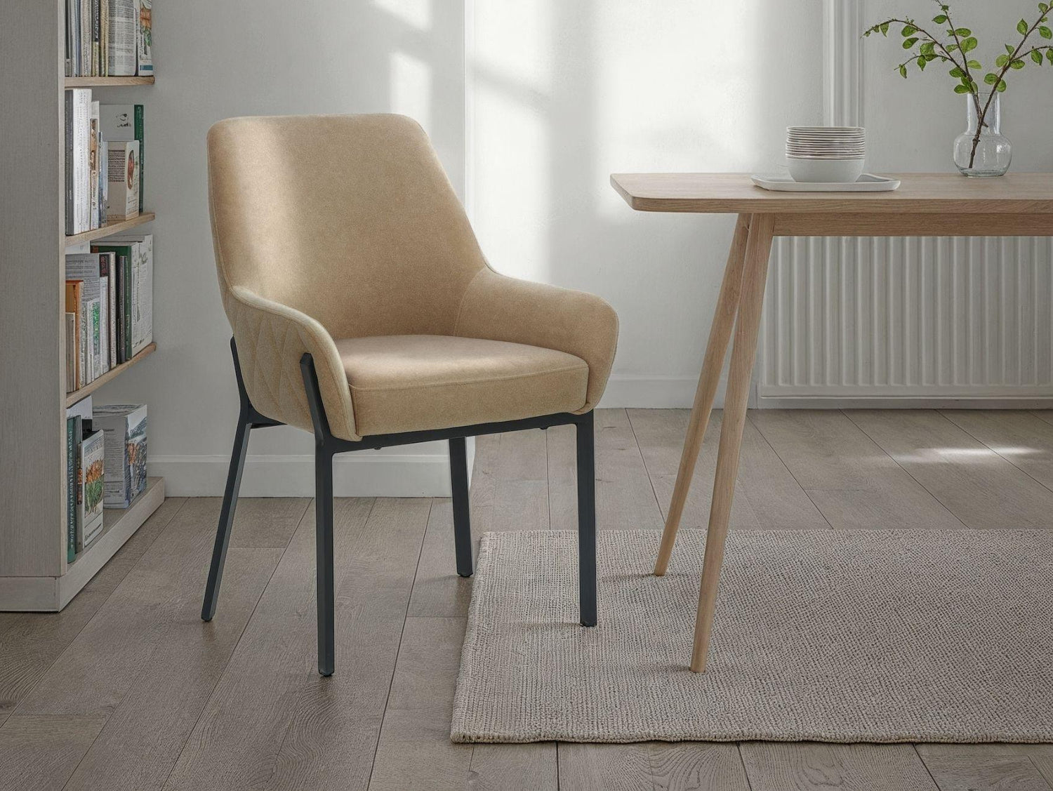 Whether you're hosting an elegant dinner or enjoying a casual meal, the Vegas dining chair combines luxurious comfort with modern design. The blend of soft mohair fabric and sleek black metal legs ensures that this dining chair not only enhances your dining experience but also elevates the look of your entire space.