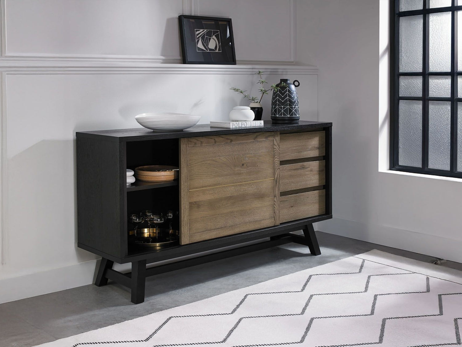 Elevate your dining space with the Candice Oak Sideboard, a versatile storage solution that combines both style and functionality. This oak sideboard boasts three spacious drawers, providing ample storage space for various items such as media equipment, electronics, crockery, and more. The sliding door offers flexibility, allowing you to conceal clutter on one side or leaving it open for displaying your treasured trinkets and decor.
