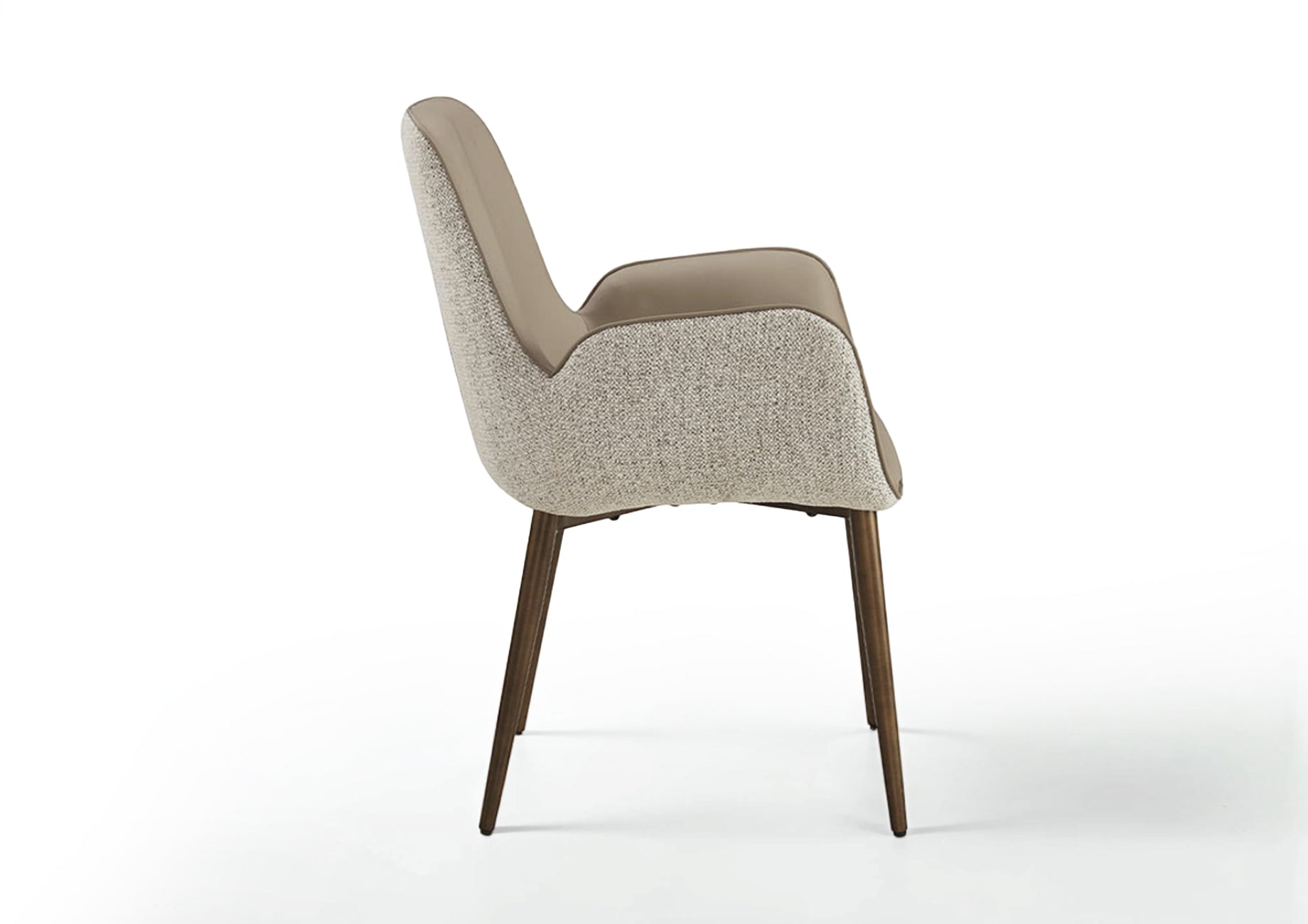 Designed for comfort and style, the Denali Dining Chair in Mocha pairs perfectly with the Denali Extendable Dining Table or any modern dining table and chairs set. Upholstered in contrasting fabric and PU leather, this chair offers supportive seating with a designer look. Its soft cushioning and stylish silhouette make it a standout piece in any kitchen table and chairs or dining room table setup.