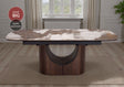 The rich, brown marble effect of the table-top gives your dining area a luxe finish, with a shapely wooden base aiding in creating a sleek, modern silhouette. Complete the set with our pairs of Solar Dining Chairs (pictured), with their smooth 360° swivel designed for your flexible comfort.