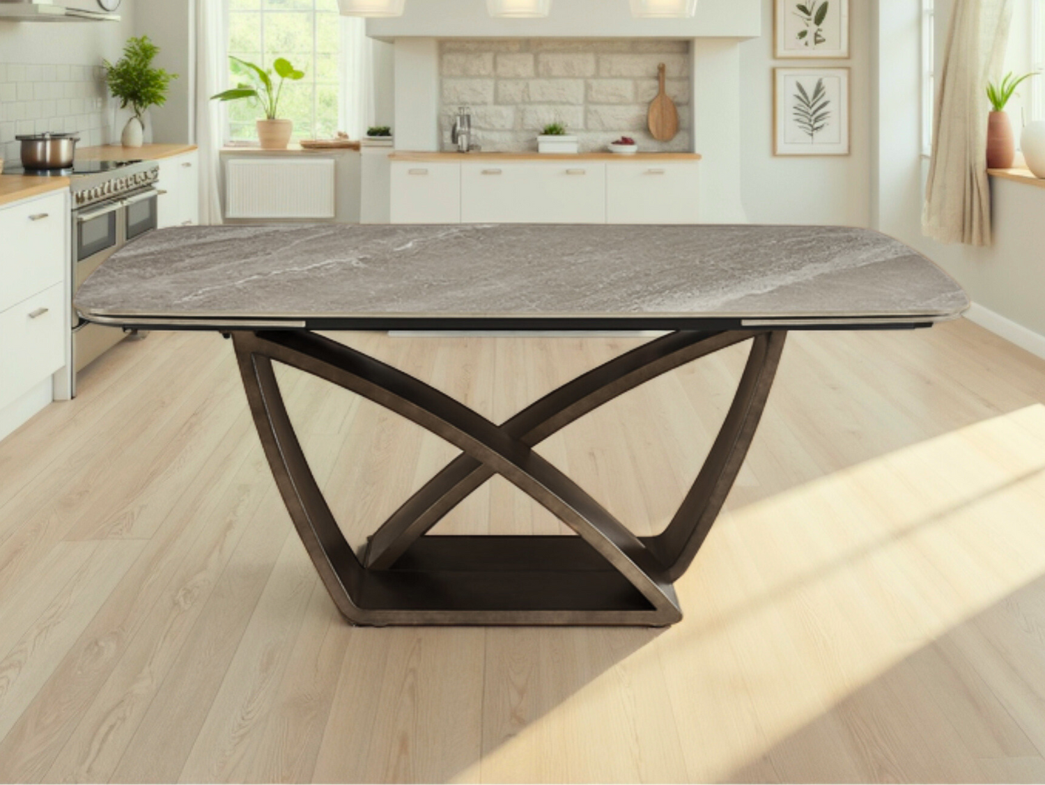 Upgrade your dining experience with the Denali Extendable Dining Table, a stunning blend of functionality and modern design. Featuring a durable sintered stone top, this extendable dining table resists water, scratches, stains, and is completely non-porous—perfect for everyday use and effortless cleaning. The sleek metal frame adds a contemporary edge, while the extension mechanism transforms the table from 1800mm to 2600mm, making it ideal for gatherings both big and small.