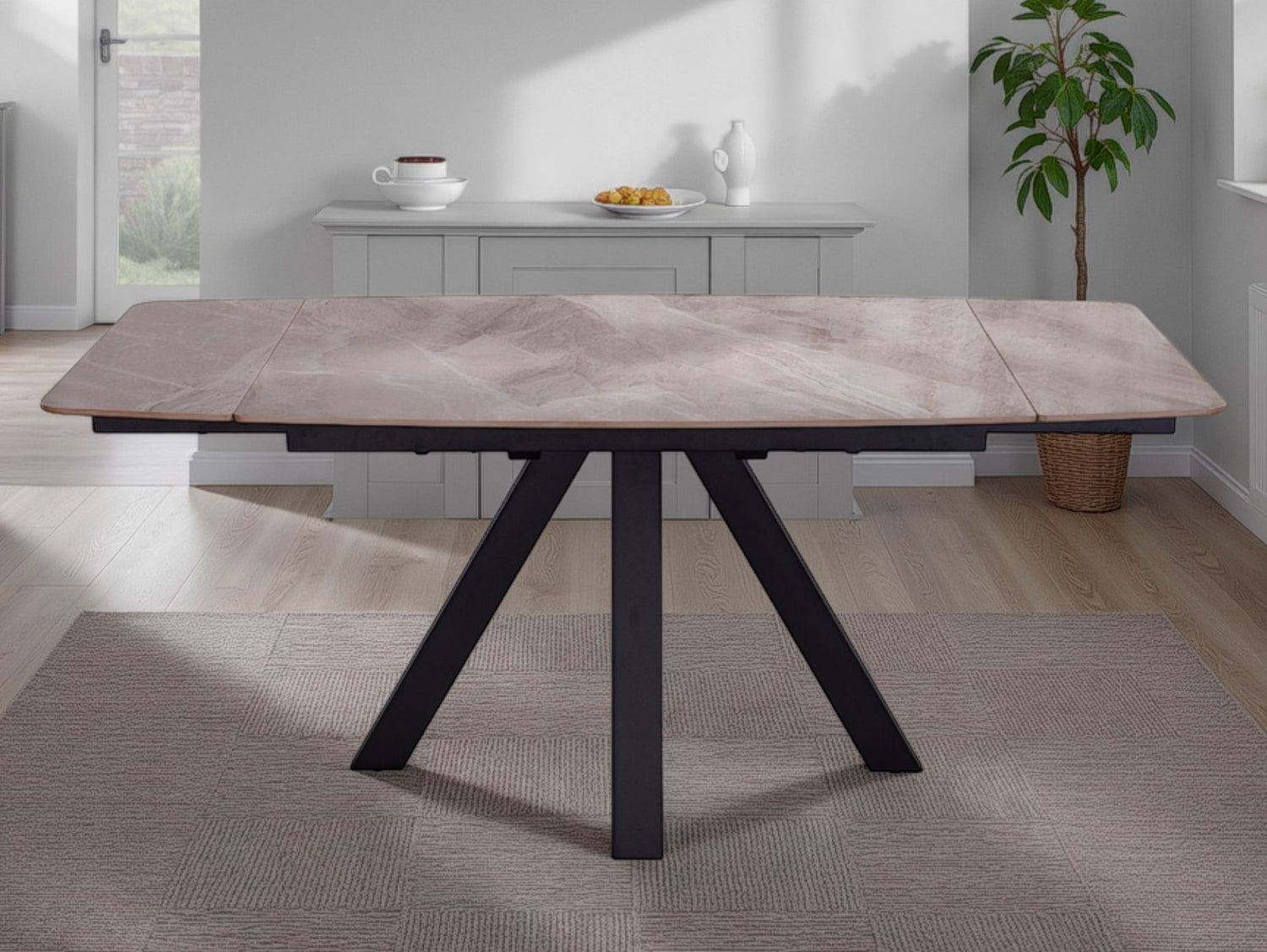 Make your dining room the subject of many a conversation with the Nadia Extending Dining Table. Suited for both families and hosting friends, this table can be extended to suit a larger number of people at will, or condensed to save on space. A marble-effect tabletop complements the contrasting black legs, a visual suited for the modern dining space while remaining classic in its colour scheme.