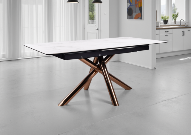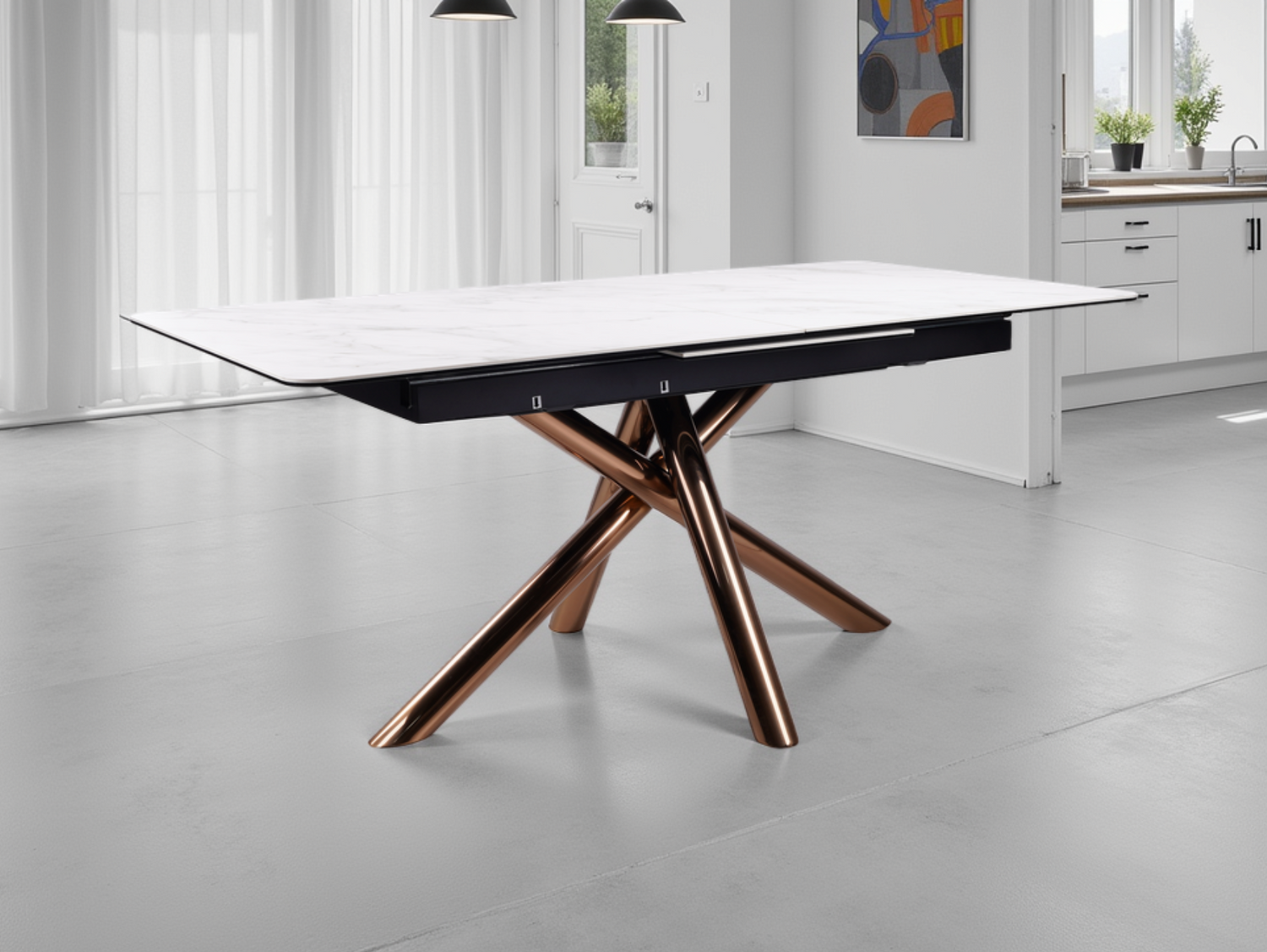 Bring timeless elegance and modern functionality to your dining space with the Olivia Extendable Dining Table. Featuring a stunning white marble-look ceramic tabletop combined with glass, this table combines the luxurious appearance of marble with the durability and practicality of ceramic. Perfect for hosting family meals or entertaining guests, the extendable design adapts effortlessly to accommodate 8–10 people, making it a versatile choice for any occasion.