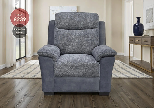 Sink into the plush comfort of our contemporary armchair, designed with both style and relaxation in mind. Upholstered in a sophisticated two-tone polyester fabric, this armchair adds a fashionable accent to any living space. The high-density foam cushioning and supportive polyester back provide exceptional comfort, while the classic wooden feet enhance its timeless appeal. Whether you're enjoying a quiet read or unwinding after a long day, this armchair offers a cozy, supportive seat you’ll love coming home to.