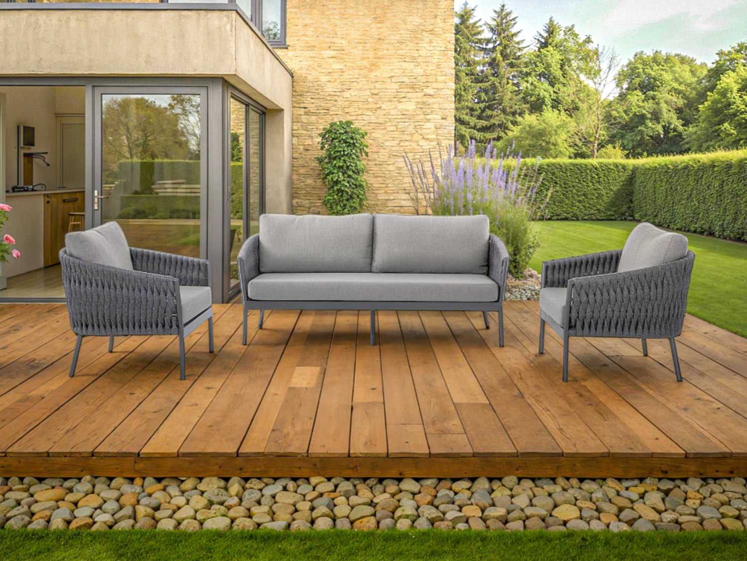 Indulge in the ultimate outdoor relaxation experience with the Rope 3 Seater and 2 x Chair Set. Elevate your outdoor living space with this exquisite ensemble, where durability meets sophistication for a truly unforgettable outdoor lounging experience.