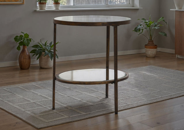 Embrace the sleek and stylish allure of the Houston Lamp Table—an exquisite solution to your occasional furniture needs. The striking round styling, enhanced with an aged bronze finish, makes this table a visual masterpiece.
