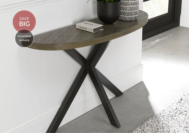 Enhance the allure of your home with the Elliot Fumed Oak range, where modern luxury meets rustic charm, and make a lasting impression with the Ellipse Console Table.