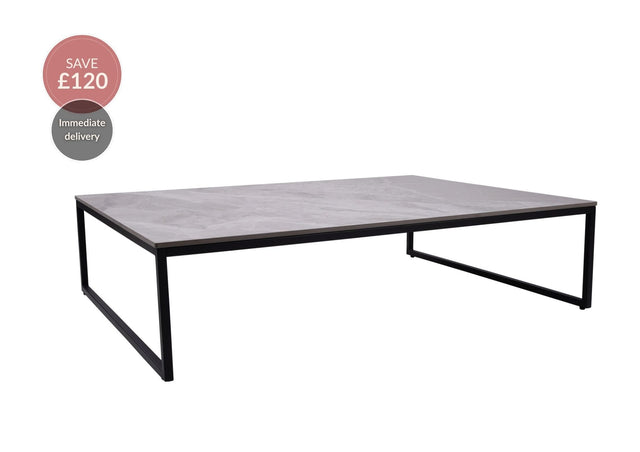 Enhance your living space with the Diego Ceramic Coffee Table, where minimalist design meets superior functionality. Featuring a grey marble-effect ceramic top and a sleek black metal frame, this coffee table combines contemporary aesthetics with the durability needed for everyday life. Perfect for a variety of settings, the Diego coffee table brings both style and practicality to your home.