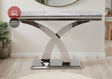 Elevate your dining experience with the striking Picasso Console Table. This piece combines the timeless appeal of luxury materials with modern design, making it a centrepiece for any contemporary space. The console table boasts billowed stainless steel legs, adding a touch of sculptural beauty while ensuring robust support for its sleek grey marble top.