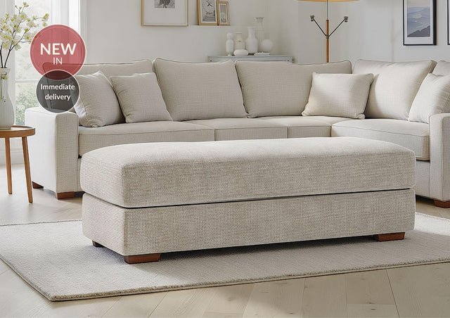 The Kallis Large Footstool is the perfect candidate for your living room's finishing touch. Ideally upholstered in soft, light stone-coloured fabric and crafted with a durable hardwood and high-density particle board frame, this footstool is built for style and longevity.