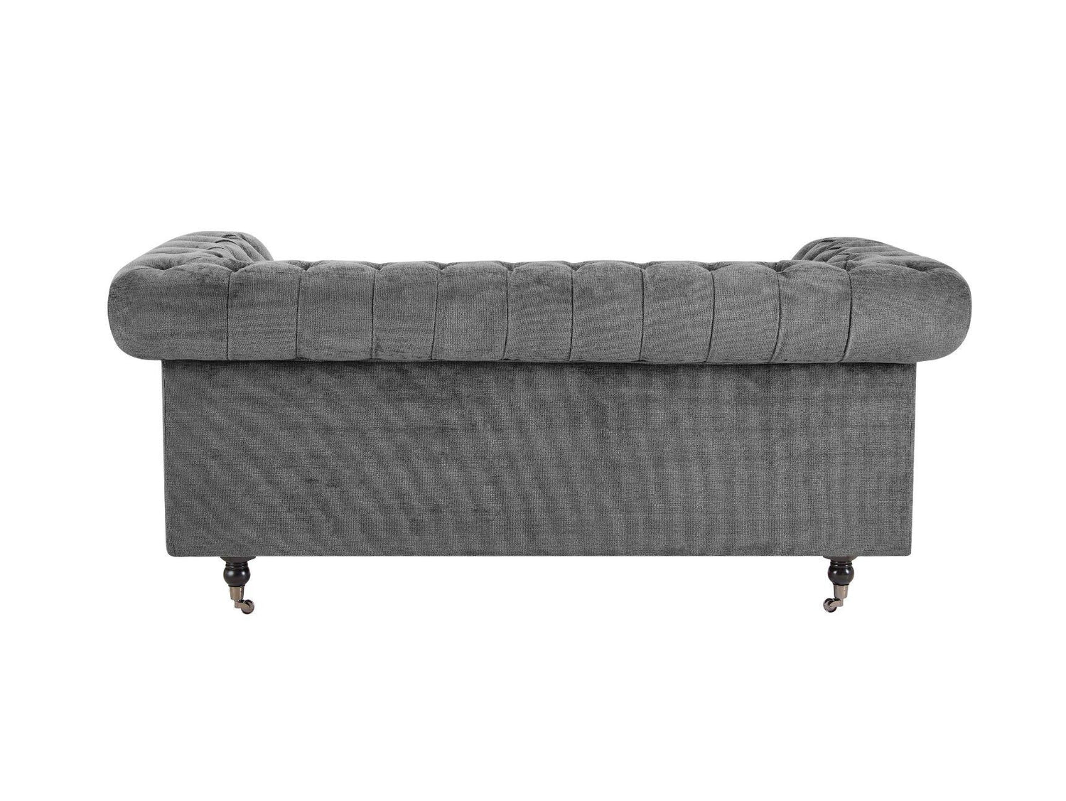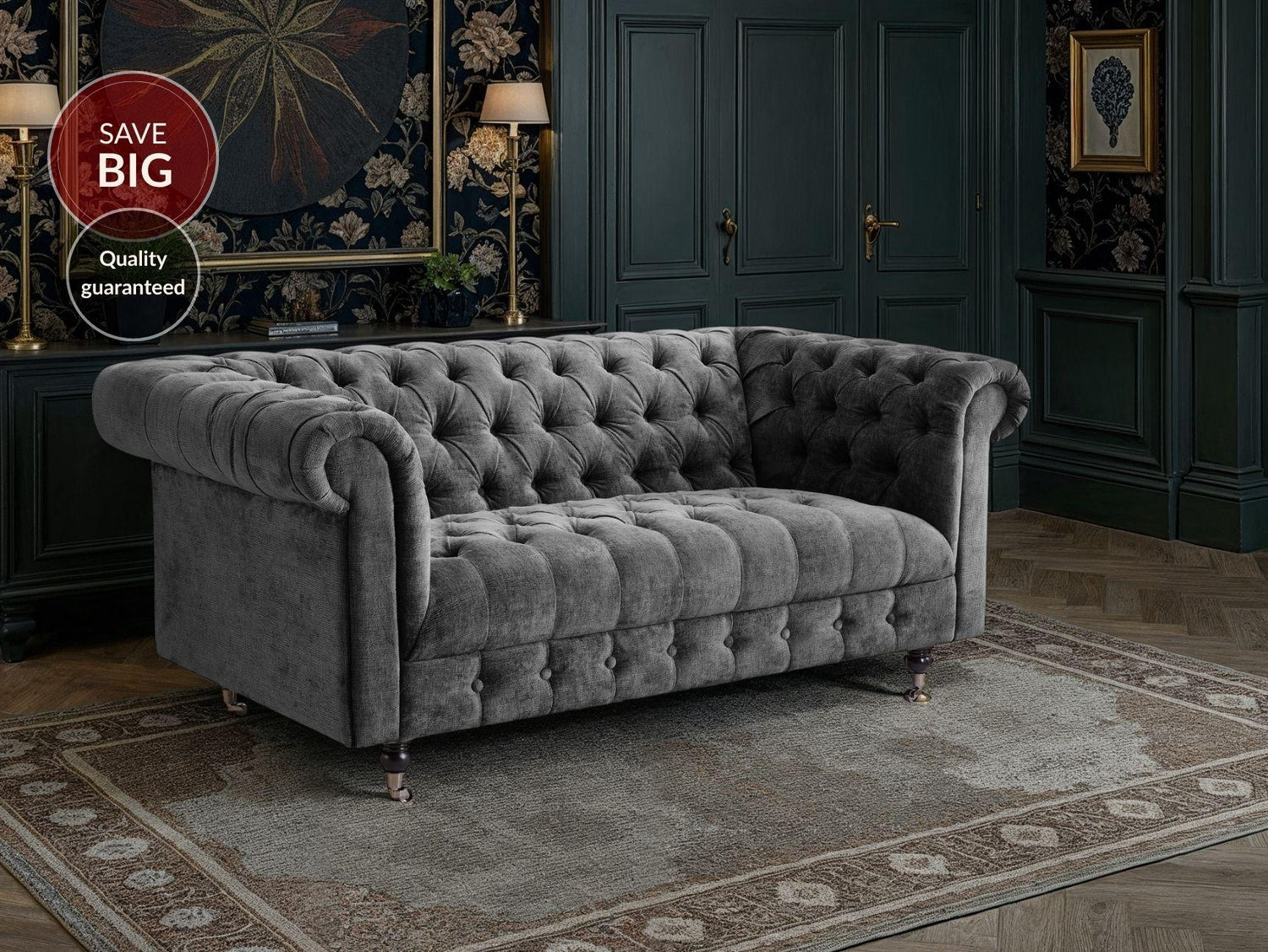 Showcasing classic Chesterfield influences, the Richmond 2 Seater features deep button-tufted detailing across the seat, back, and arms, creating a rich texture and a premium finish. Its traditional design is complemented by turned wooden legs with castors, pairing elegance with everyday practicality.
