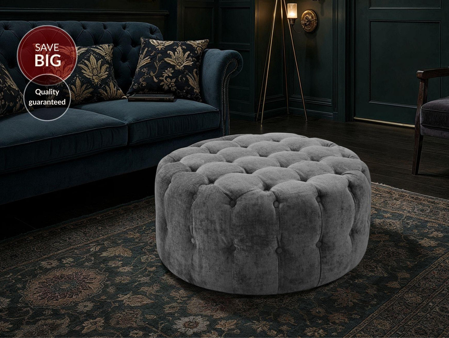 Featuring classic button-tufted detailing and a generously cushioned top, this footstool offers a comfortable spot to put your feet up or an extra seat when needed. Its rounded silhouette adds a modern softness to the traditional Chesterfield-inspired design, making it a beautiful addition to any room.
