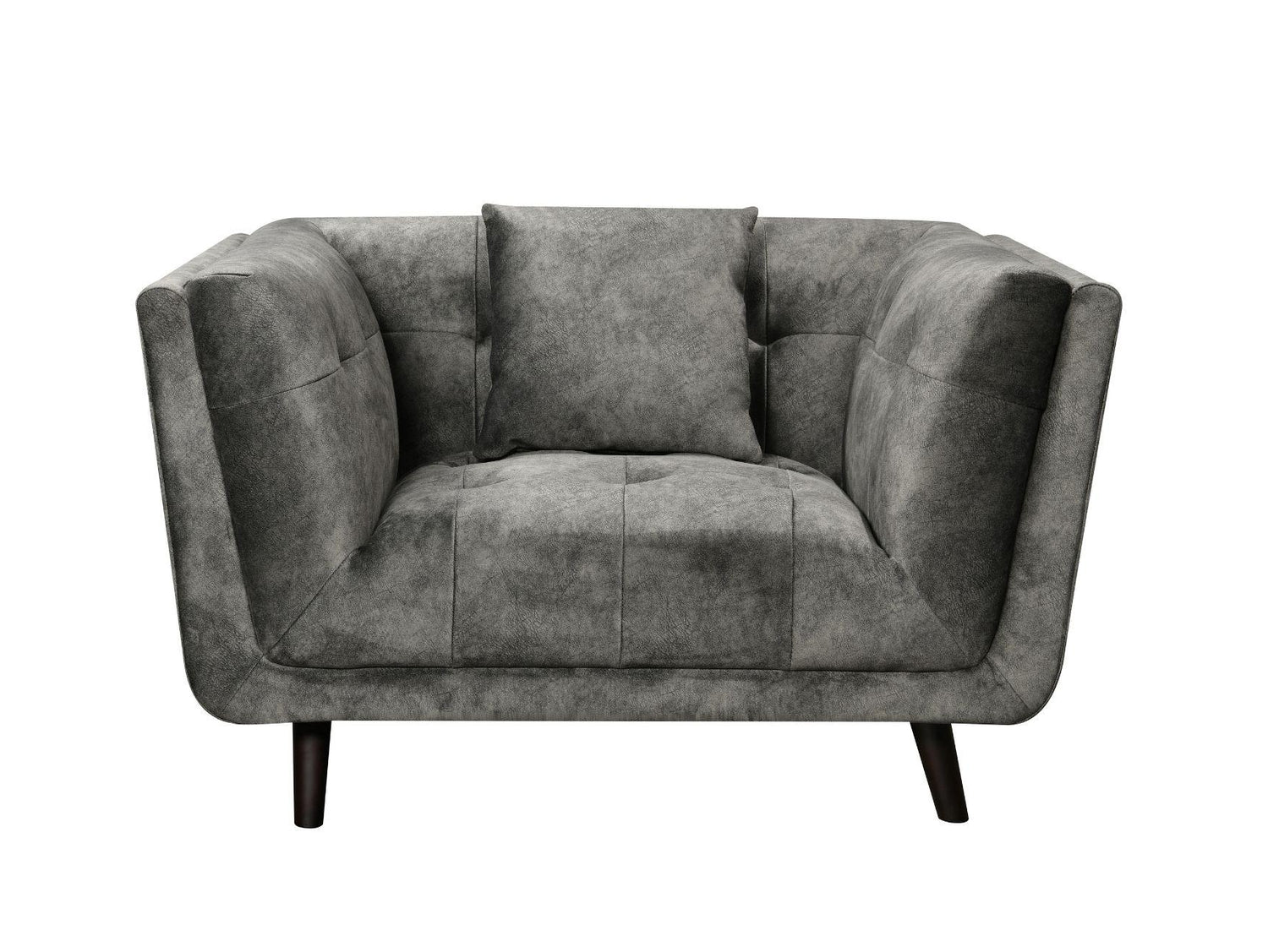 Elevate your living space with the Modena Love Chair, a perfect blend of elegance, comfort, and craftsmanship. Wrapped in rich, luxurious fabric upholstery in a sophisticated grey hue, this armchair is designed to be the centerpiece of any room.