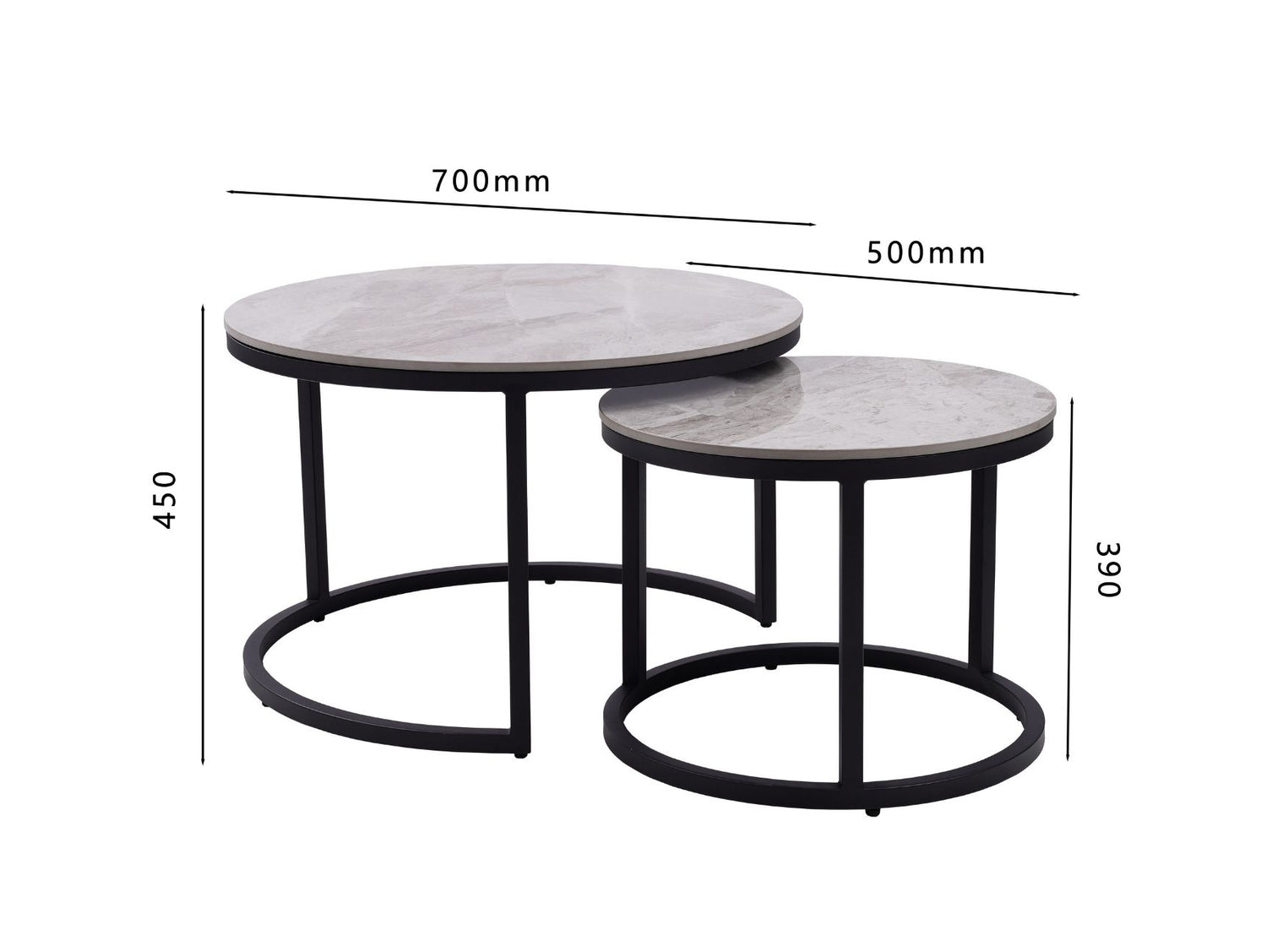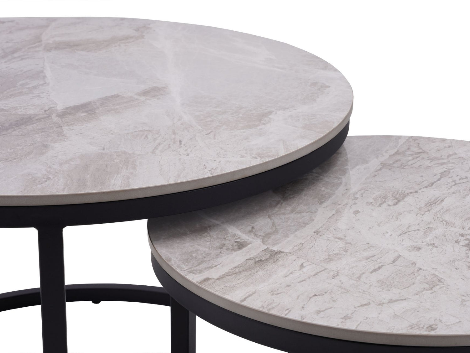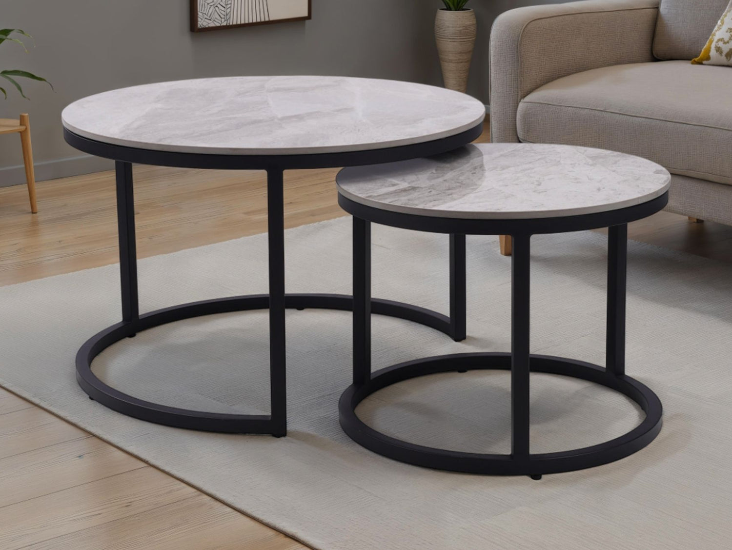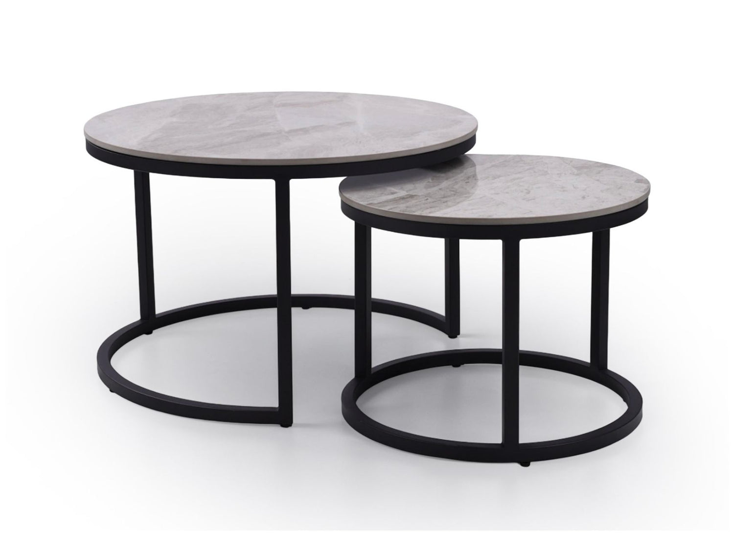 Elevate your space with the Juan Nest of Coffee Tables, a perfect blend of versatility and contemporary design. Featuring two ceramic-topped tables with a sleek grey marble effect, this nesting set provides a practical yet stylish solution for modern living. The black powder-coated metal frames add a touch of industrial charm, making these tables a standout addition to any room.