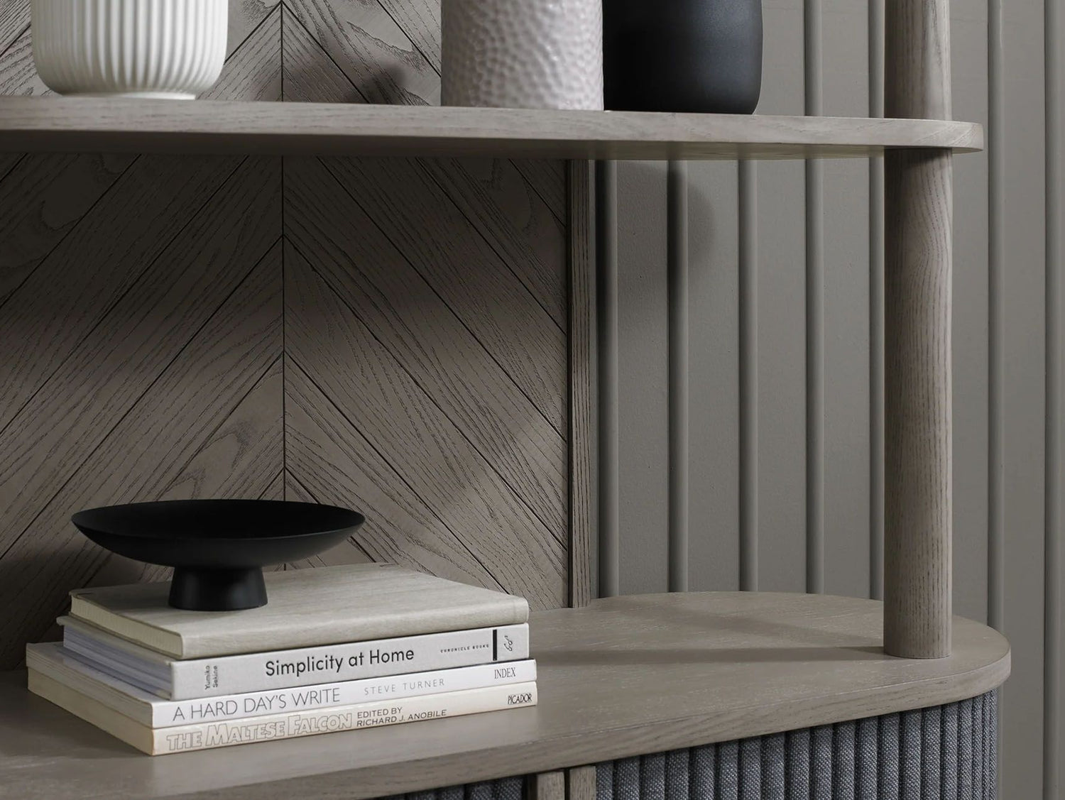 The Marilyn Open Display Unit artfully blends classic and contemporary styling, resulting in a timeless statement piece that can elevate any home's decor. Comprising lozenge-shaped forms, this unit embraces current design trends with its organic and flowing designs, instilling a sense of serenity through its gentle curves and softened edges.