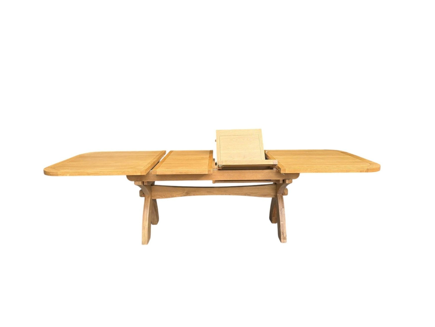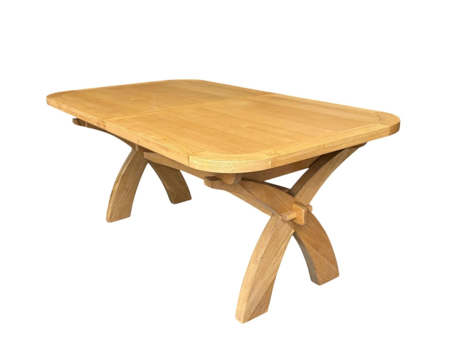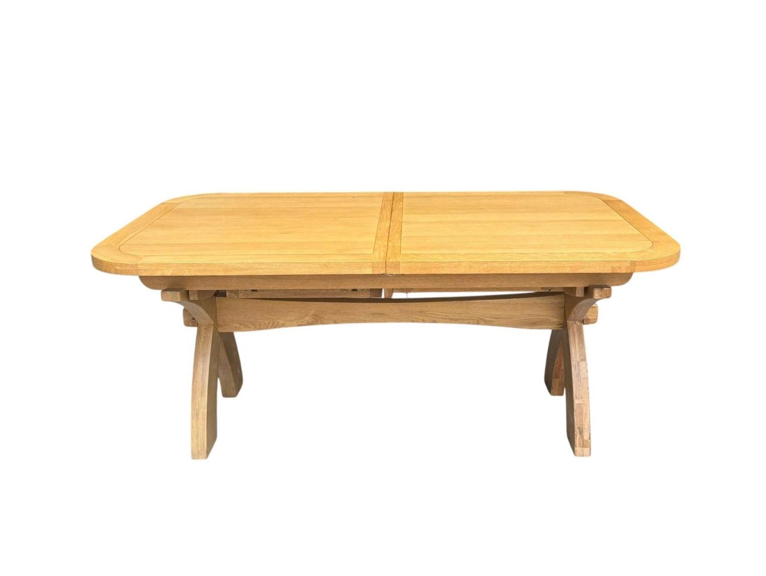Bring the natural world inside your home with our Somerset Dining Table, well-suited for any who favour wood tones in their dining space. Crafted with solid natural oak, durability has been a high priority in the creation of this table. With the tasteful, arched design of the legs and innovative extending feature, this table was created with appearance in mind alongside convenience. Whether it's a peaceful night in with the family or hosting a small gathering, this table makes it easy; keep it compact to seat 4-6 people, or extend to fit up to 10.