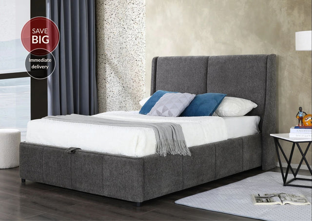 Crafted with a durable board frame base and a convenient four-piece storage board, this end-lift ottoman bed provides ample storage space beneath the mattress. Ideal for keeping extra bedding, pillows, or personal items, the Hyde Park bed's design is both practical and stylish. Upholstered in a luxurious dark grey chenille fabric, this bed frame offers a soft touch and elegant look, adding warmth and depth to your bedroom decor.