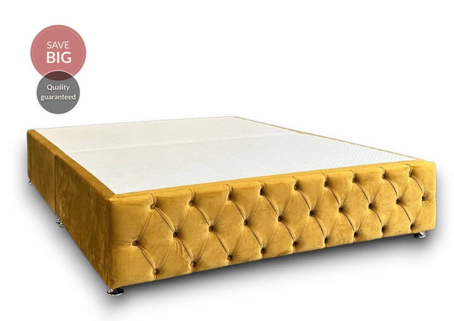 Enhance your bedroom with the Embliss Quilted Design Bed Base with matching footboard, a perfect blend of sophisticated style and dependable craftsmanship. Featuring a quilted frame design and a matching headboard, this bed base offers a luxurious touch to elevate any bedroom decor while providing a robust and elegant foundation.