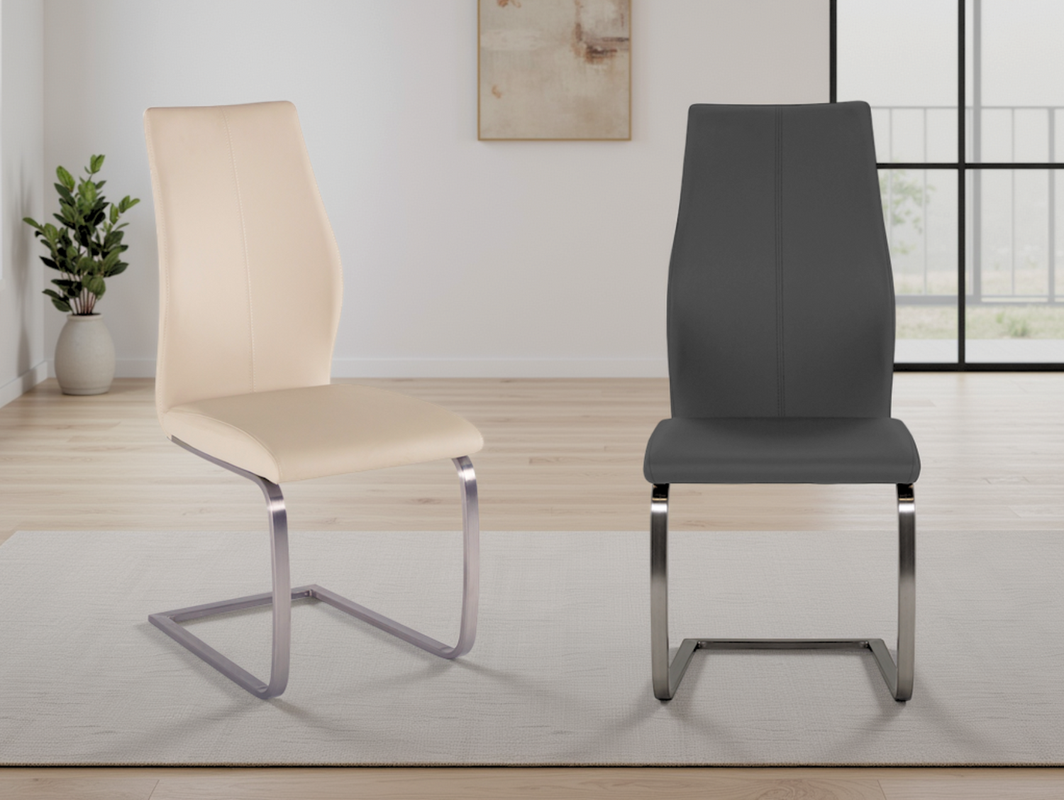 The Florence Dining Chairs feature a robust brushed steel frame, reinforced for extra strength and stability, making them ideal for everyday use and special occasions alike. Their contemporary design and smooth finish bring a touch of elegance to any dining setting, whether you're hosting family dinners or stylish gatherings.