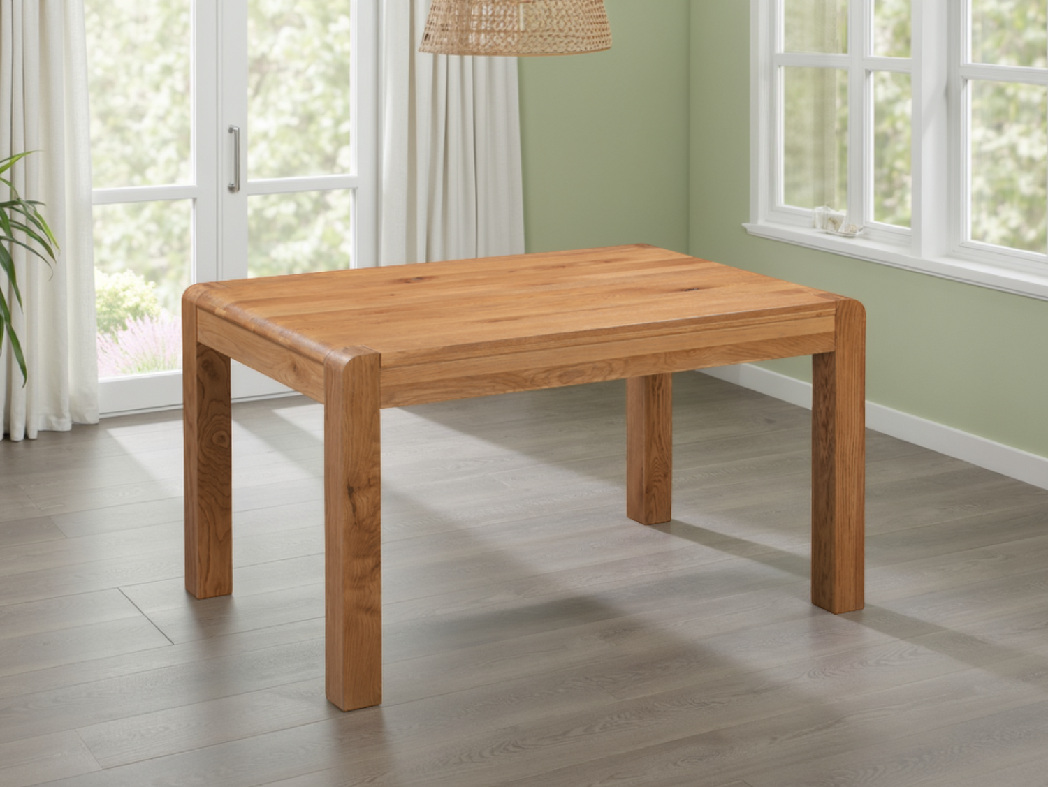 Elevate your dining experience with the Milan Oak Dining Table, a stunning blend of contemporary design and timeless elegance. Crafted from high-quality oak, this dining table boasts a generous 140x90cm surface, providing ample space for family gatherings, dinner parties, or everyday meals.