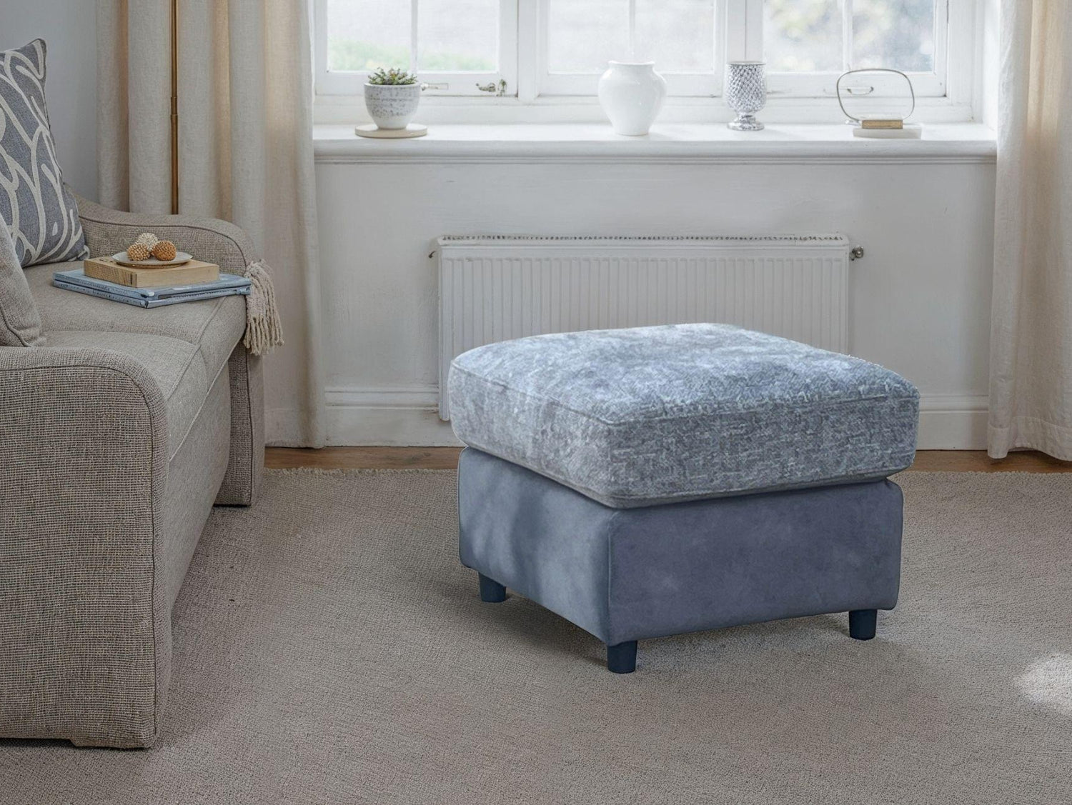 The Chester Ottoman Stool is the perfect addition to a living room. This stool is upholstered in two-tone grey fabric for additional comfort, suitable for resting your feet or even as an extra seat where needed.