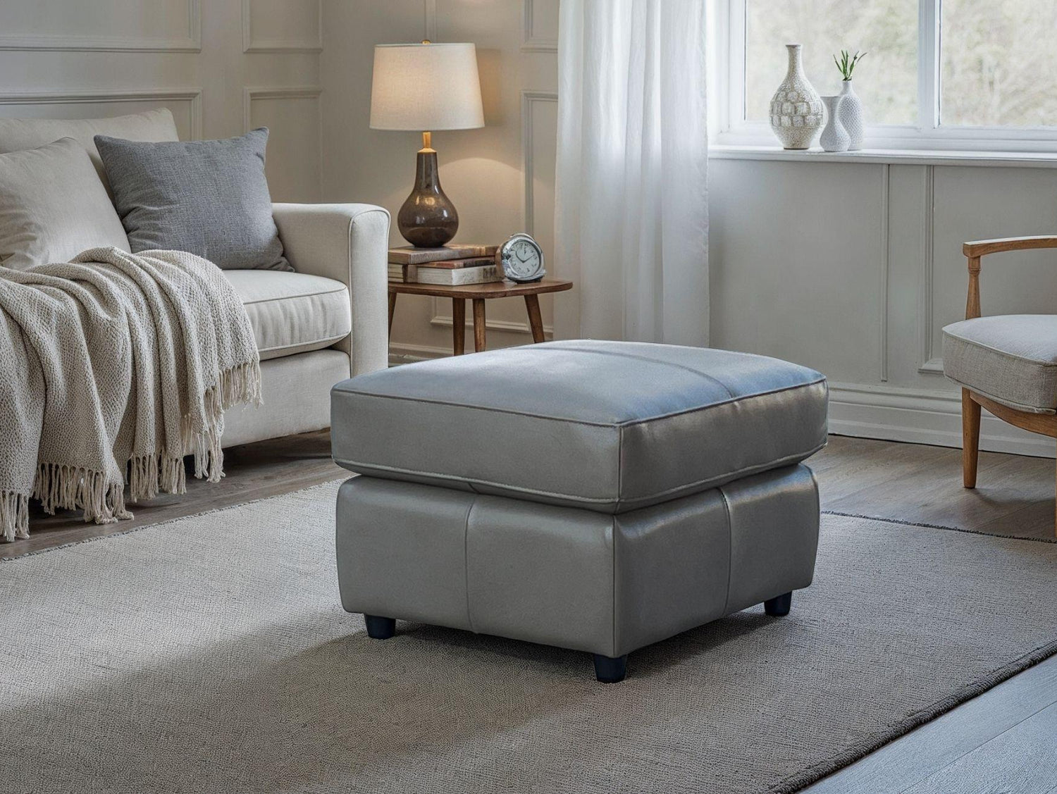 Complete your contemporary living space with the Renzo Footstool, a sleek and versatile piece designed for everyday comfort. Upholstered in premium leather and available in two classic colour options - Grey or Black - it brings a refined, minimalist touch to any room.