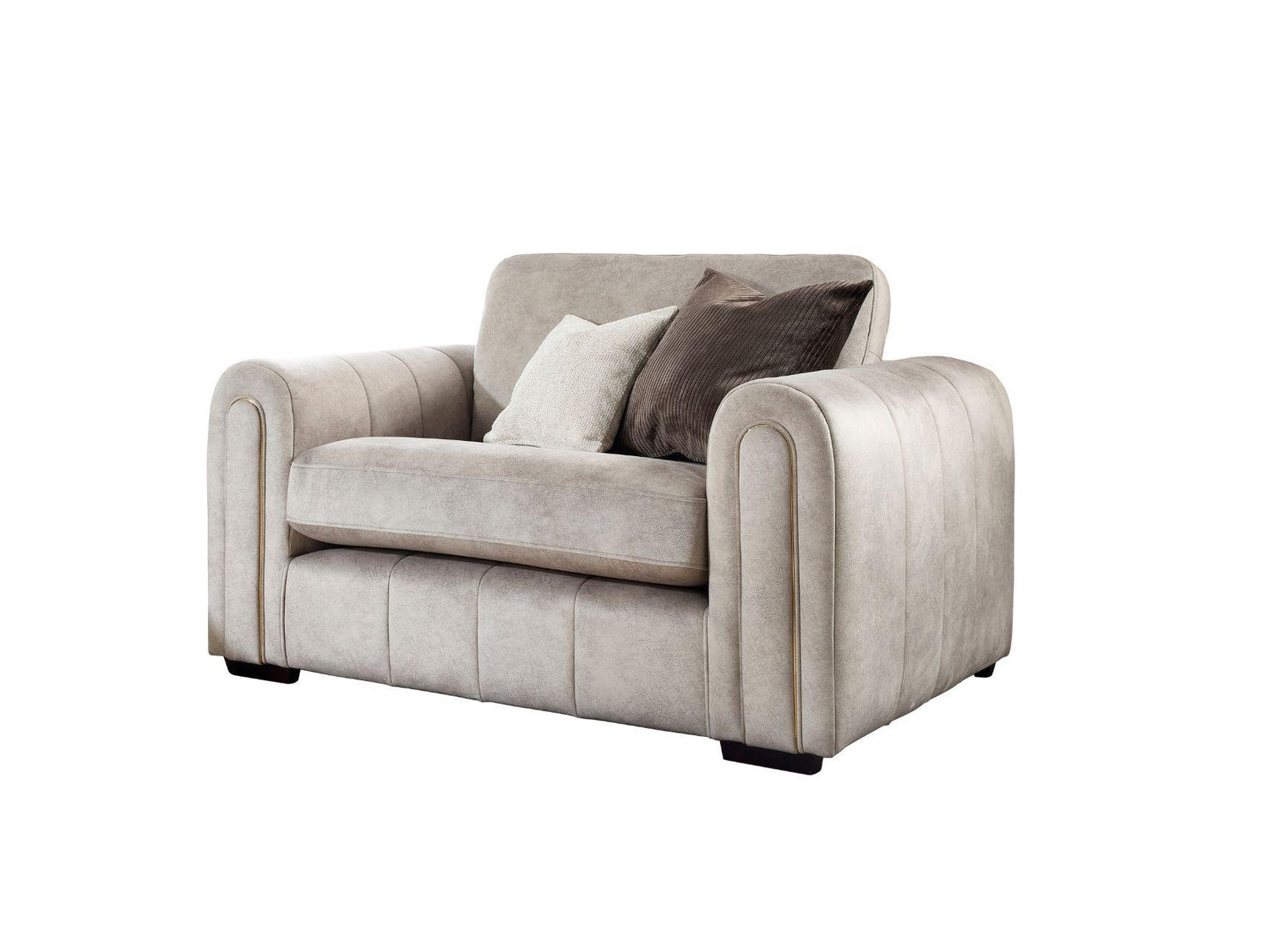 Upholstered in the soft, textured Stone Collection fabric, the Love Chair adds a touch of refined warmth to your home. The luxurious gold piping enhances its elegant silhouette, while the mahogany-effect feet complete the look with classic charm.