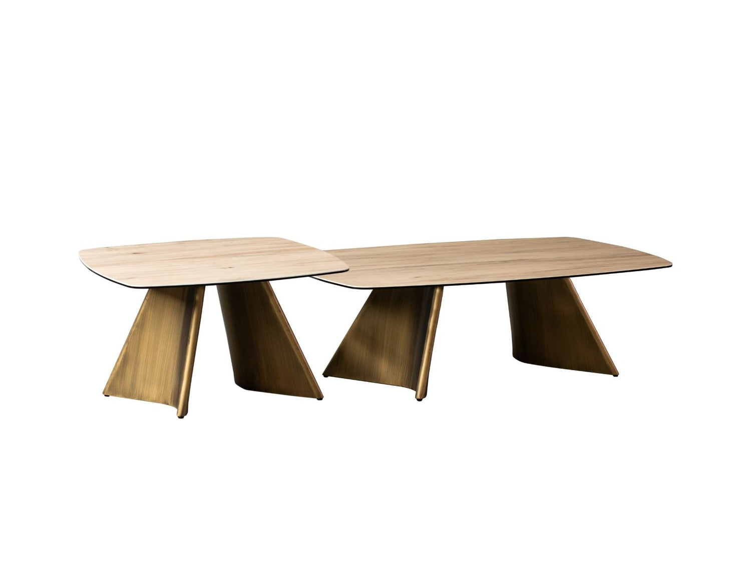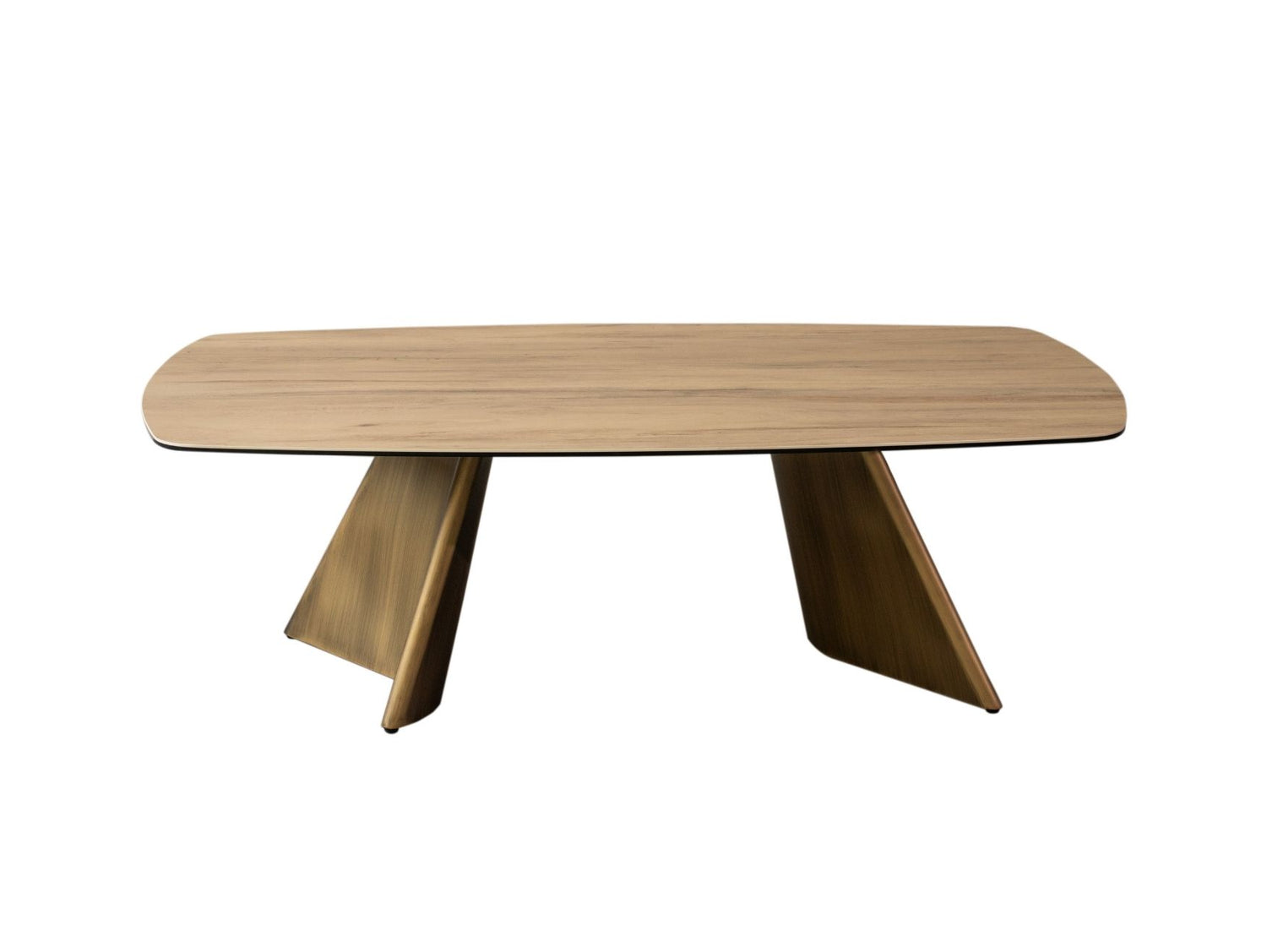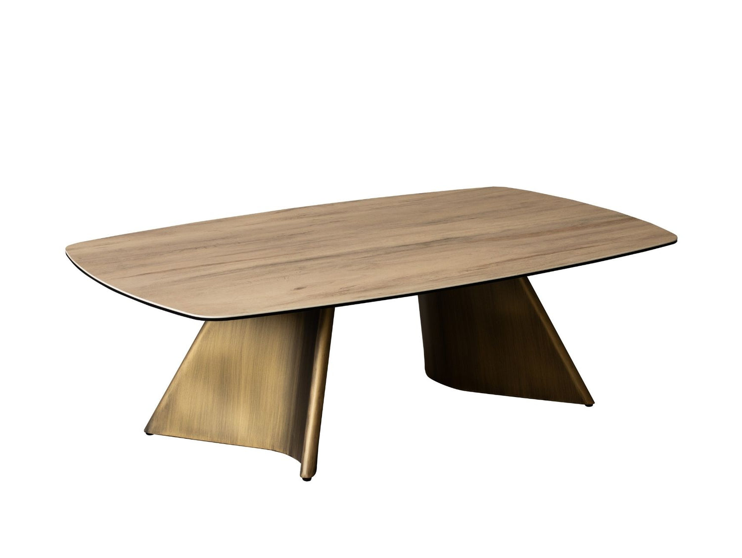 Crafted with a B3 brushed gold metal base and topped with 3mm ceramic wood veneer and 6mm glass, this coffee table offers the height of modern appeal. With a minimalist design, this piece is built to suit contemporary living, and can be dressed up or down for any occasion.