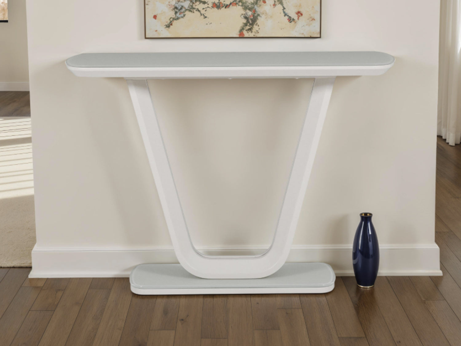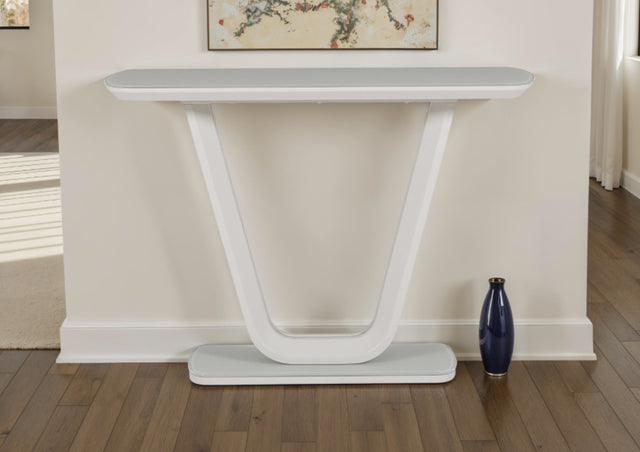 The Florence Console Table brings futuristic elegance to any interior with its smooth, rounded edges and sleek profile. Part of the Florence Range, paired with a sophisticated frosted tempered glass top that enhances light and space in your home.