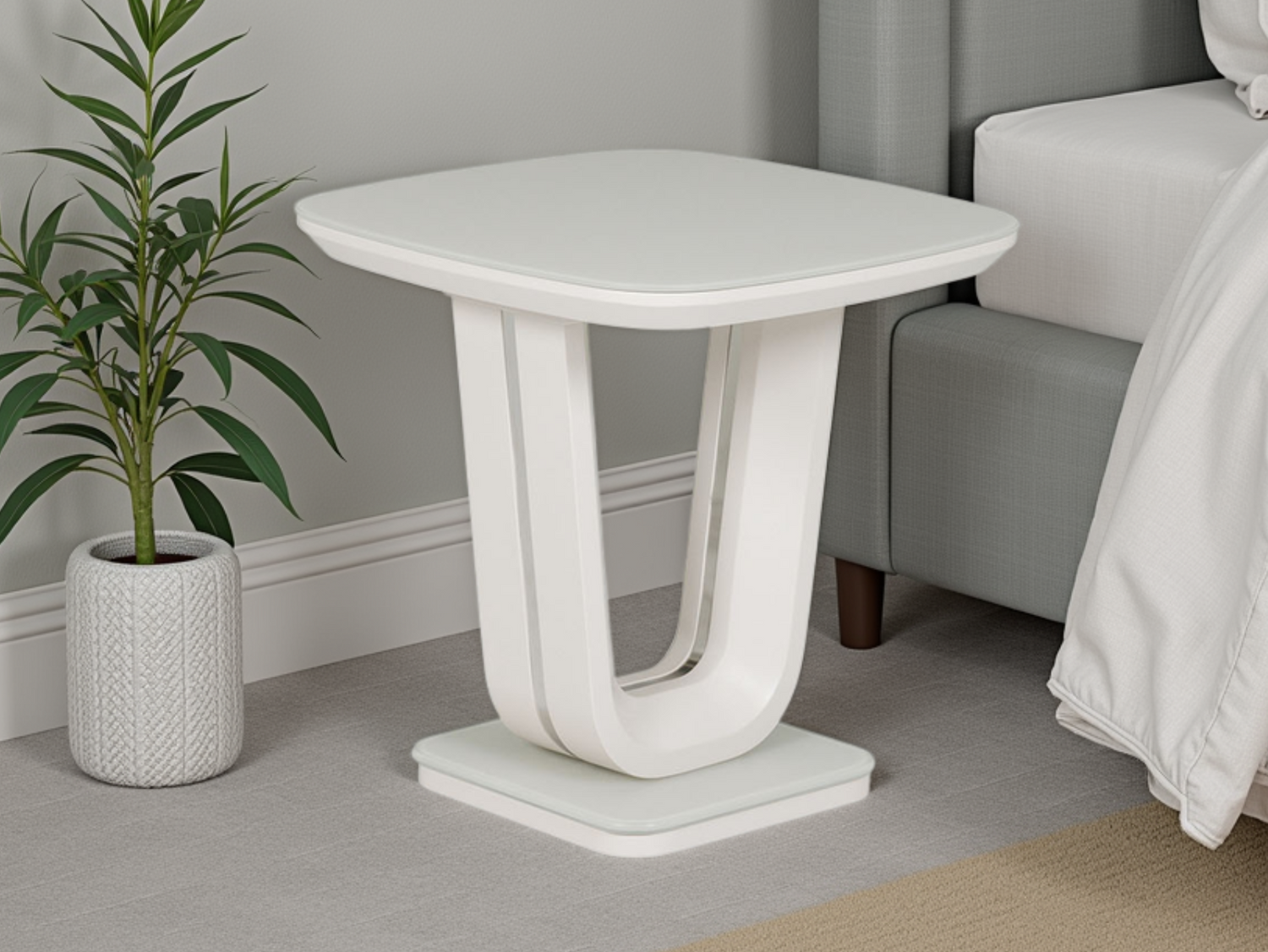 The Florence Lamp Table brings a refined, futuristic flair to your home. Part of our contemporary Florence Range, this compact table features smooth rounded edges and a frosted tempered glass top for a sleek and sophisticated look. It adapts effortlessly to any modern space.