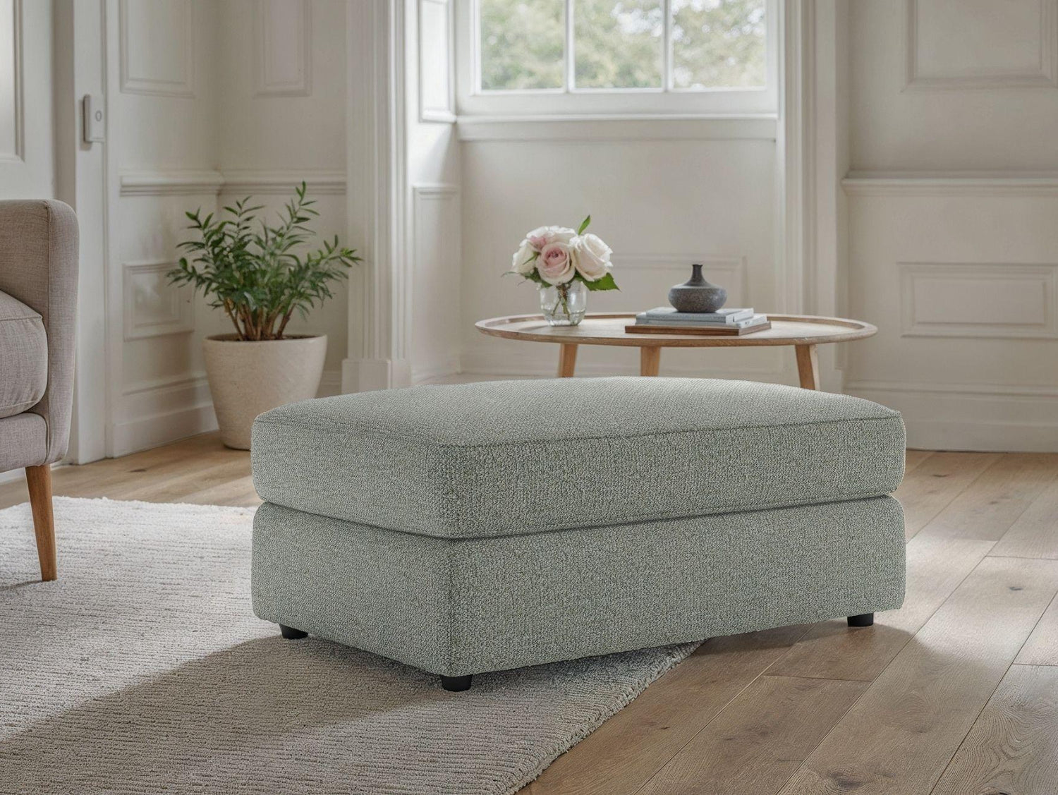 Upholstered in the soft, textured Stone Collection fabric, the footstool adds a warm, timeless touch to your décor. Finished with oak-effect feet, it pairs effortlessly with the Abby sofa collection for a coordinated, modern look.