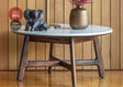 The round table top rests gracefully on the exquisitely crafted framework, boasting softened rounded edges for a touch of sophistication and warmth. This coffee table is more than just furniture; it's a statement of style and craftsmanship, destined to be a glorious addition to your home.