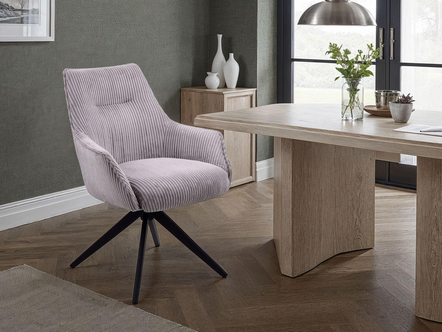Transform your dining area with the Bianca Dining Chair, a stunning combination of comfort, functionality, and modern design. Upholstered in corduroy fabric and featuring a 360° auto-return swivel function, this chair is crafted to enhance both style and convenience in your home.