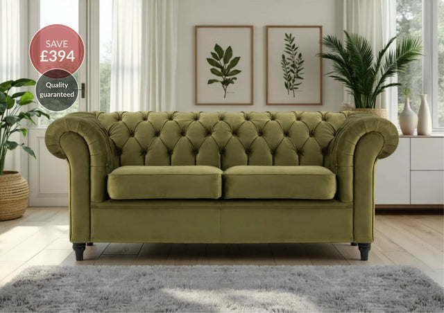 The Cornwall 2 Seater brings refined elegance and superior comfort to your living space, featuring a timeless deep button chesterfield design and a durable solid beech wood frame. The resilient foam core seat cushions, wrapped in soft Dacron fiber, provide the perfect balance of support and comfort, making it an ideal choice for cosy lounging.