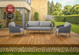 Upholstered in Axroma specialist outdoor endurance fabrics, our cushions boast yarns that are 100% solution-dyed with a water repellent additive, ensuring the entire yarn repels water and retains its vibrant color even after exposure to the elements. With interior fillings encased in water repellent bags, you can trust that your sofa set remains dry and weatherproof, ready to provide unparalleled comfort at a moment's notice.
